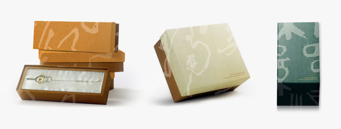 (1)單個(gè)文字的創(chuàng)意變形編排設(shè)計(jì)。對單個(gè)(或少量)文字在整體包裝版面中進(jìn)行變形設(shè)計(jì)。如下圖所示:系列包裝。其中利用自由書法字形的解構(gòu)造型設(shè)計(jì)分散性地排列在整個(gè)包裝上,講究文字的編排布局效果,呈現(xiàn)出別具一格。