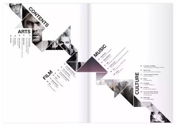 如何運用元素來構(gòu)造版面利用三角形構(gòu)圖的方式來穩(wěn)定圖文信息,是編排設(shè)計中較為基本的手法。利用大小不同的圖片創(chuàng)造節(jié)奏感,同時仔細(xì)擺放圖片的位置,則能通過頁面整體印象,傳達(dá)版式設(shè)計內(nèi)在的概念。
