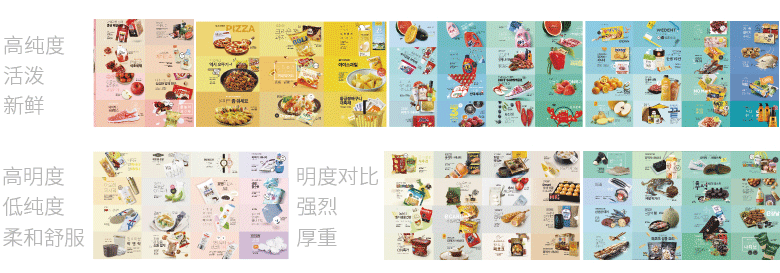 純度和明度的把握主要還看我們希望傳達出的整體視覺效果是怎樣的,根據(jù)產(chǎn)品調(diào)性、畫面效果來實際匹配才好。